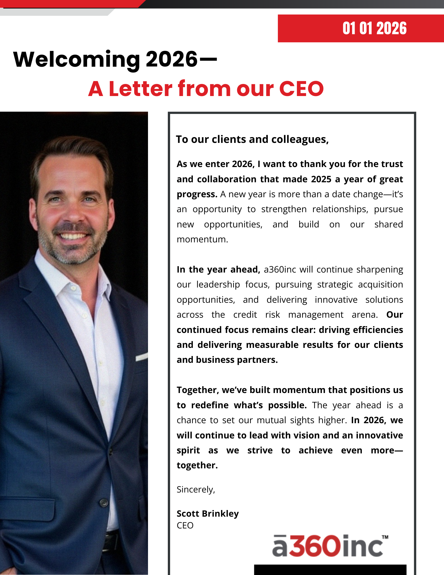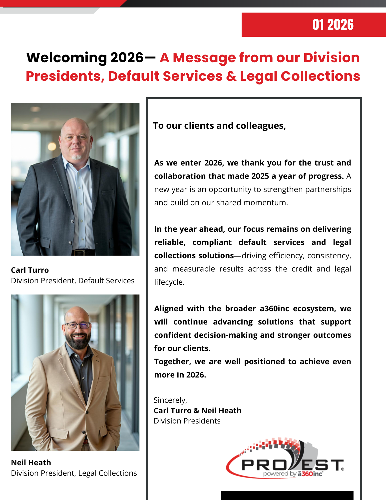☆ From Milestones to Momentum . . . Challenges to Breakthroughs . . . Vision to Value . . . Leadership to Lasting Impact . . . Innovation to Implementation . . . Partners to Progress . . . Strategy to Success ☆ From Milestones to Momentum . . . Challenges to Breakthroughs . . . Vision to Value . . . Leadership to Lasting Impact . . . Innovation to Implementation . . . Partners to Progress . . . Strategy to Success ☆ From Milestones to Momentum . . . Challenges to Breakthroughs . . . Vision to Value . . . Leadership to Lasting Impact . . . Innovation to Implementation . . . Partners to Progress . . . Strategy to Success insights Announcements ✓ Greater Value to Our Clients & Partners a360inc Integrates Blackmarker’s AI-Powered Redaction Tool ✓ Purpose Driven Acquisition a360inc Acquires Notary Hub, Expanding Digital Signature ✓ Greater Value to Our Clients & Partners Statewide Publishing Grows & Integrates with CaseAware ✓ Leadership Evolves & Strength Continues ProVest Announces New Division Presidents ✓ Drive Strategic Innovation & Client Centric Solutions Rob Pajon Appointed SVP, Client Product Management Hear from Our Leaders Read & Watch Read Letter Now READ LETTER NOW Let’s Talk in Person